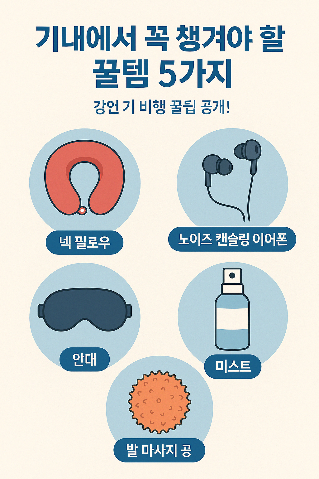 이 다섯 가지만 챙겨도 기내 피로가 훨씬 줄어든다.
