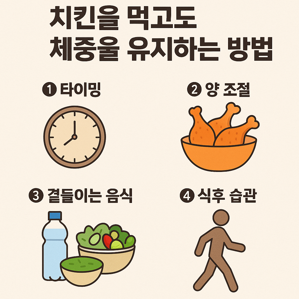 치킨을 포기하지 않고 체중을 유지하는 건 불가능한 일일까? 사실 방법만 잘 알면, 치킨도 충분히 즐기면서 건강도 챙길 수 있다. 문제는 치킨 그 자체가 아니라, 우리가 어떻게 먹느냐에 있다.