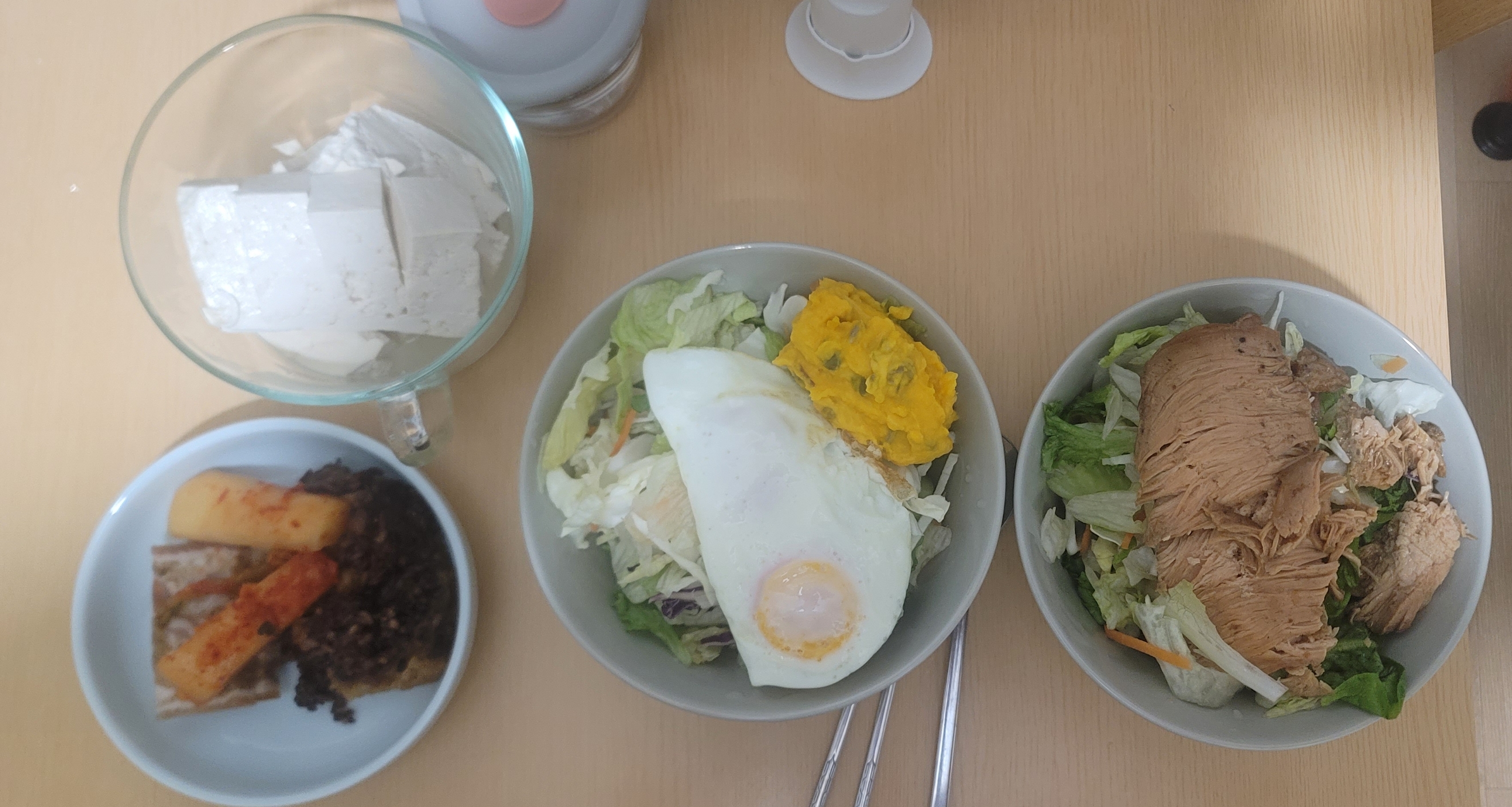 닭가슴살 120g, 두부 500g, 계란 2개를 꾸준히 섭취했습니다. 단백질은 포만감을 유지해주고, 기초대사량 유지에 중요합니다.