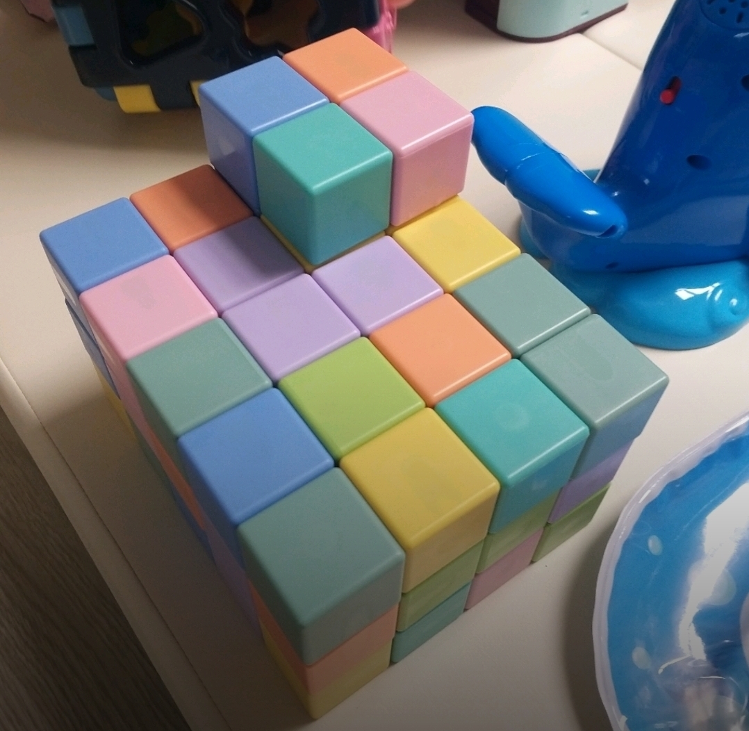 구성품도 다양해서 단순한 쌓기 놀이뿐만 아니라, 도형 분류, 모양 맞추기, 간단한 구조 만들기까지 폭넓은 활동이 가능합니다. 아이가 상상력을 발휘해서 로켓, 집, 동물 등 여러 가지를 만들기 시작하니 점점 더 몰입하는 모습을 보게 되었습니다.