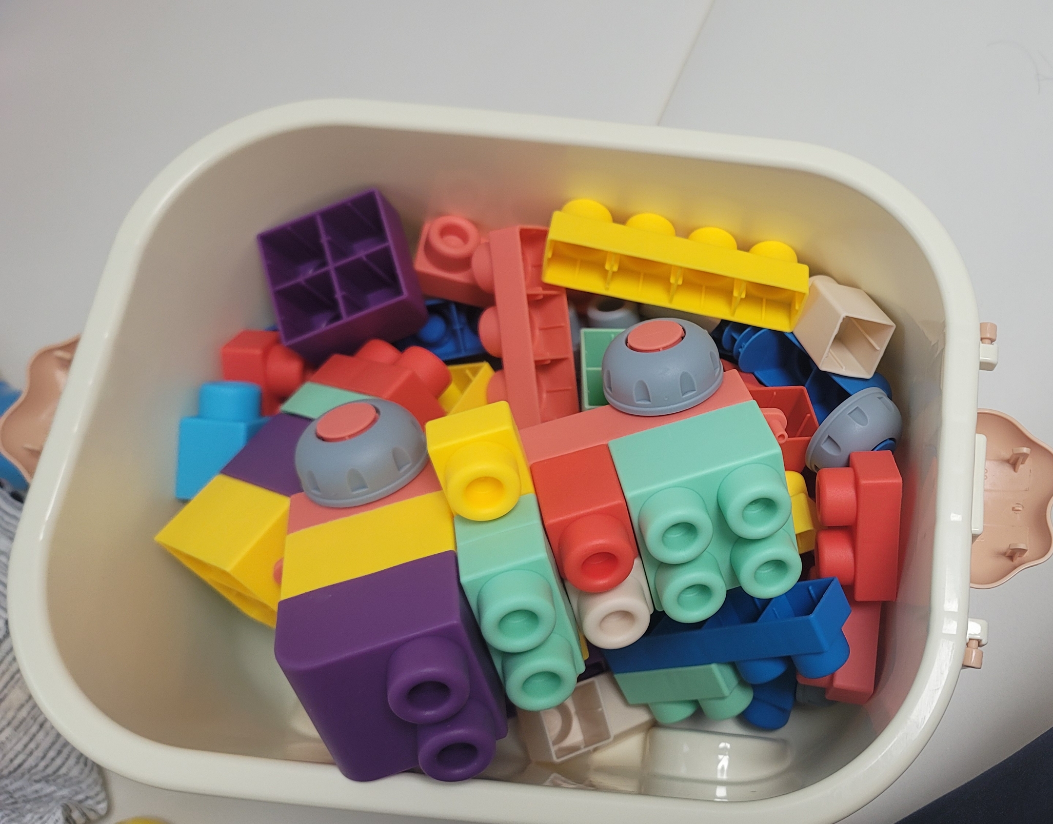 베비몽 소프트 말랑 블럭 대형은 파스텔 톤과 원색이 적절히 조합된 예쁜 색감이 가장 먼저 눈에 들어왔습니다. 블럭의 크기가 큼직해 아이가 입에 넣기 어렵고, 다양한 모양과 크기의 블럭이 포함되어 있어 놀이의 폭이 넓습니다. 세트에는 정사각형, 직사각형, 긴 블럭, 바퀴형 블럭 등이 포함되어 있어 단순한 쌓기뿐 아니라 로봇, 자동차, 동물 등 다양한 창작물이 가능합니다.