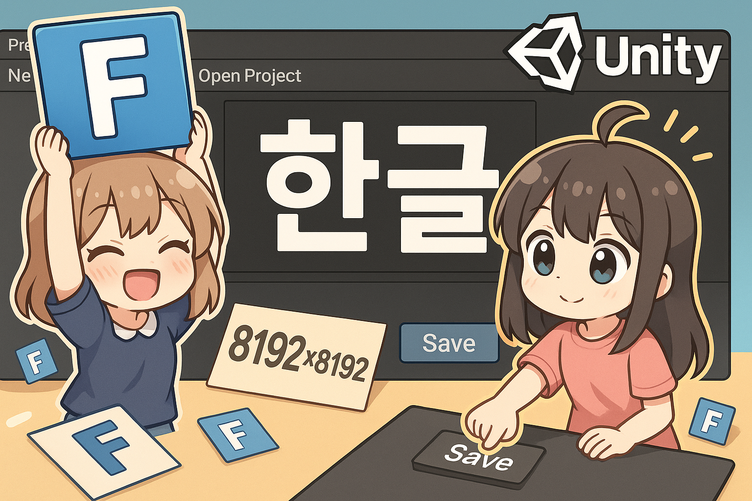 TMP는 일반 텍스트보다 훨씬 선명하고 성능 최적화가 잘 되어 있어서 요즘 Unity 프로젝트에서 거의 필수처럼 쓰인다. 그런데 문제는 한글이다. 영어 알파벳 몇십 개만 있으면 되는 것과 달리, 한글은 수천 자가 필요하다. 이걸 커버하려면 Atlas(폰트 아틀라스) 크기를 크게 잡아야 하고, 한글이 포함된 폰트를 써야 한다. 그렇지 않으면 글자가 제대로 안 나오고, 특히 “□” 같은 빈 사각형만 뜨게 된다. 그래서 폰트를 만드는 과정이 단순히 ‘폰트 파일 하나 끌어다 쓰기’가 아니라 꽤 체계적인 절차가 필요하다.