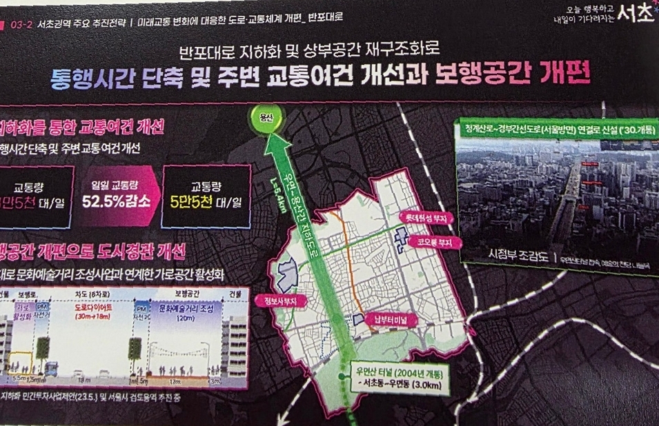 그럼에도 불구하고, 이번 소식이 주는 의미는 상당하다. 서초동은 이미 강남권 핵심 입지와 교통 편의성을 갖춘 지역이다. 여기에 경부간선 지하화와 대형 부지 개발이라는 호재가 더해진다면, 단순히 기존 아파트 가격 상승을 넘어 상권, 문화, 생활 인프라 전반의 질적 도약이 가능하다. 이는 서초구 전체의 브랜드 가치를 높이는 결과로 이어질 수 있다.