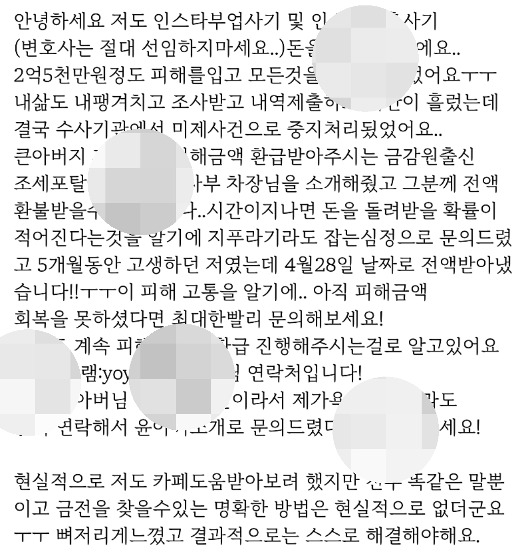1. 인스타 대출사기·부업사기 피해자들을 노리는 ‘2차 사기’가 기승을 부리고 있다.