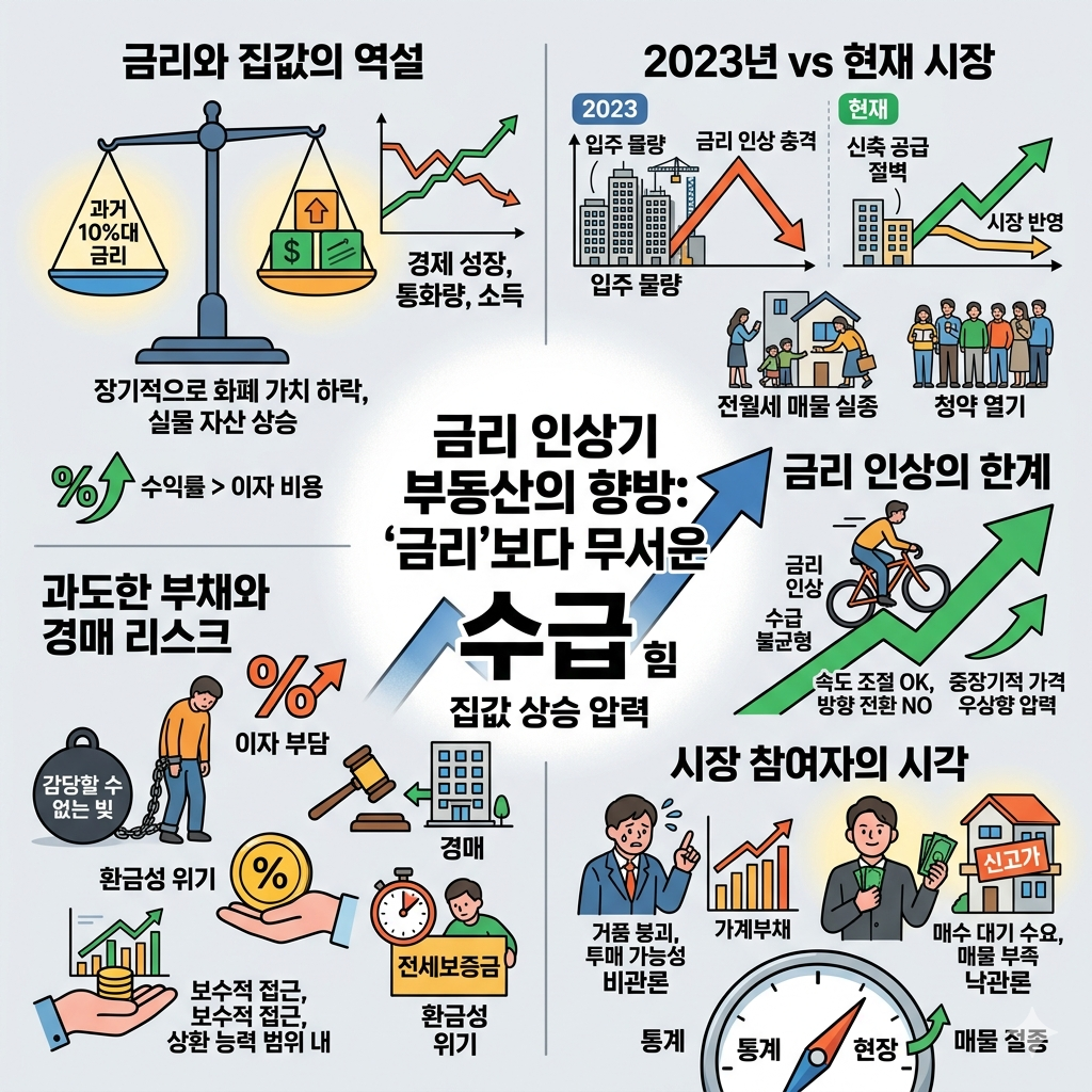 금리 인상이 부동산 시장에 일시적 충격을 줄 수는 있으나, 역사적으로 가격 흐름과 반드시 반대로 움직이지는 않았다