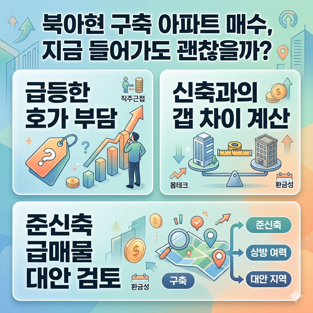 북아현동 구축 아파트는 실거주 측면에서 분명 매력적인 선택지지만, 최근의 가파른 호가 상승은 투자 측면에서 부담스러운 것이 사실이다.